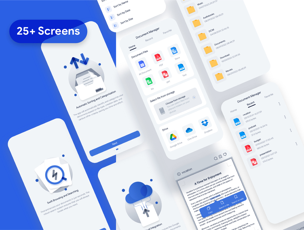 By using this application you can view all your document on your device. All Document is used to view, read ,and share all kinds of document files. The app is completely offline no need for an internet connection. - UI Kit for the Document Manager application - an excellent design tool to help you create a perfect and efficient user experience.